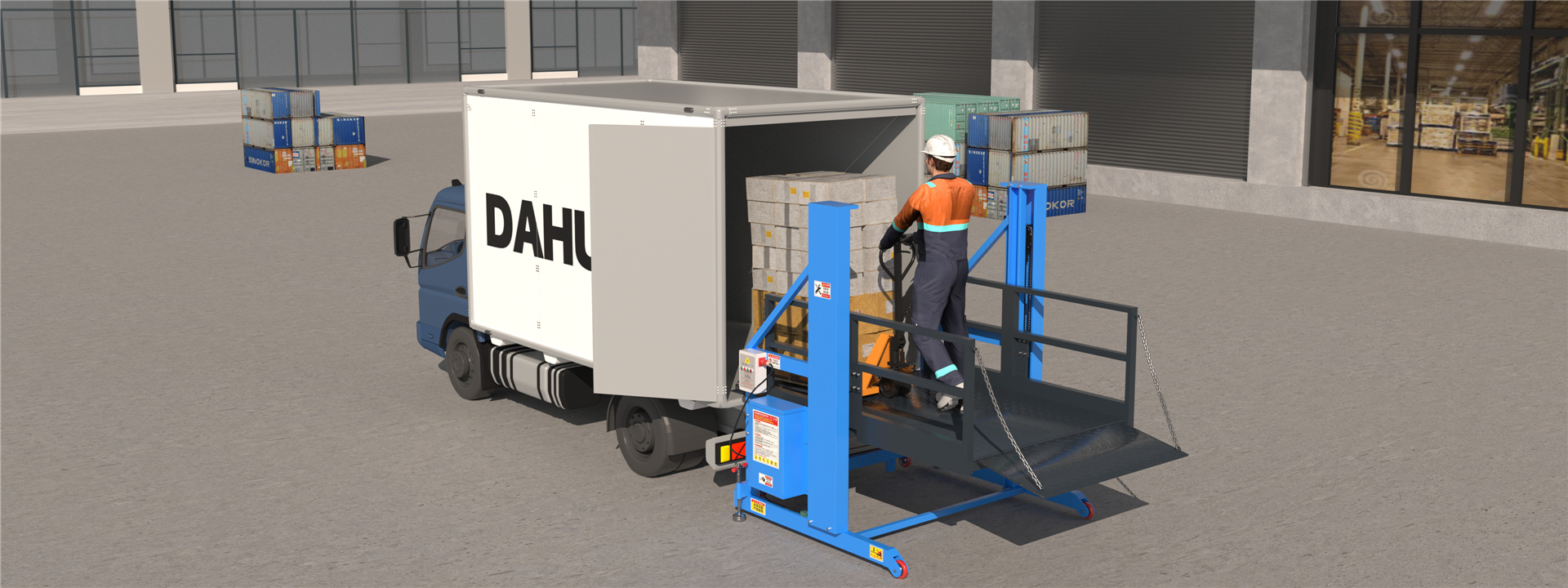 移动式登车桥叉车可以直接通过本设备驶入车厢内部进行货物的连续装卸。安全 高效!